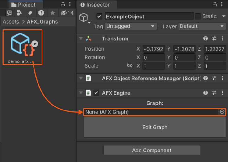 4. Drag the AFX graph file from the **Project** panel to the **Graph** field of the **AFX Engine** component.