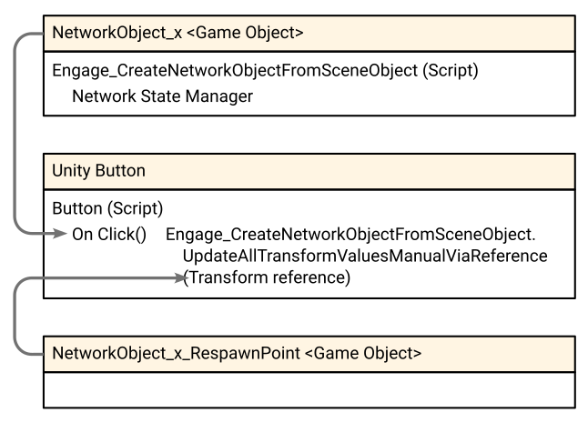 The following diagram shows an example of how to arrange the components for a single network object in Unity, and the required references.