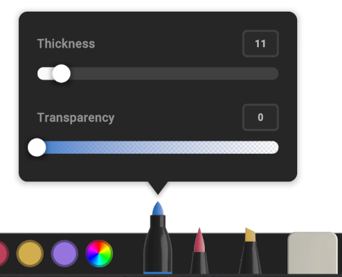 For a pen, you can adjust the thickness and transparency: