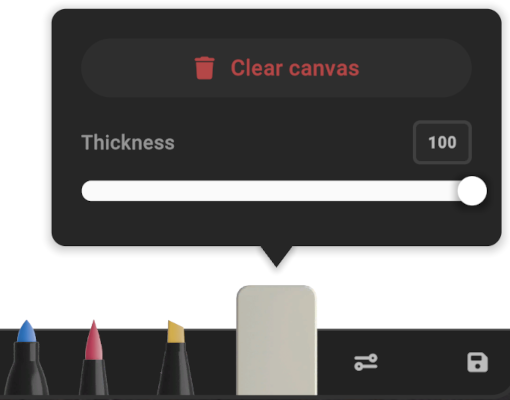 For the eraser, you can adjust the thickness, and also access an option to clear the Drawpad: