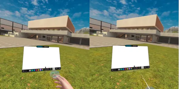 <figure><img src="https://3460182399-files.gitbook.io/~/files/v0/b/gitbook-x-prod.appspot.com/o/spaces%2FwVx6bvwqEE7tD0TYOcfj%2Fuploads%2Fgit-blob-86a8839213e7438e59c8082b4894605627166ef4%2Fvr_draw_compare.webp?alt=media" alt=""><figcaption><p>VR drawing modes: touch (left) and ray (right)</p></figcaption></figure>
