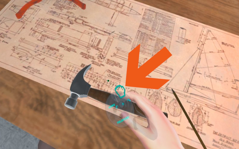If an object is within reach of your virtual hand, you can grab it and move it directly. When you move your virtual hand close to an object, a hand icon appears. Hold down the trigger on the controller to grab the object.