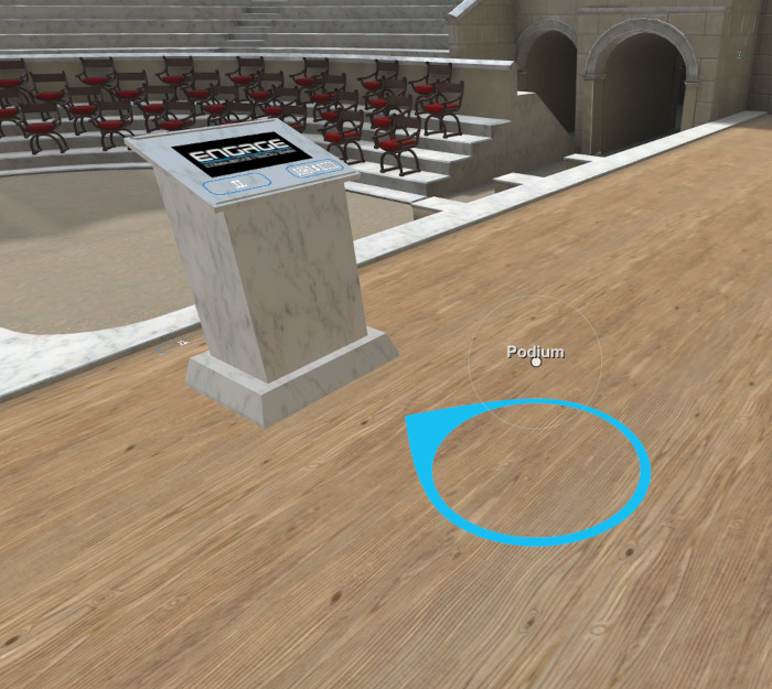 6. **Optional**: Rotate the spawn point marker so that the point faces in the direction that you want users to face after they travel through the portal. For more information, see[transforming-an-object](https://docs.engagevr.io/engage/advanced-features/modifying-objects/transforming-an-object "mention").