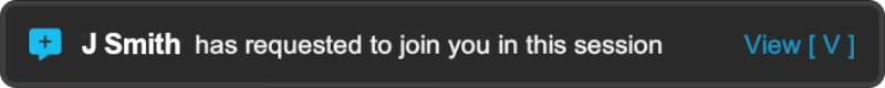 A connection can send a request to join you in a Session. If they do, you will see a notification in the application like the following: