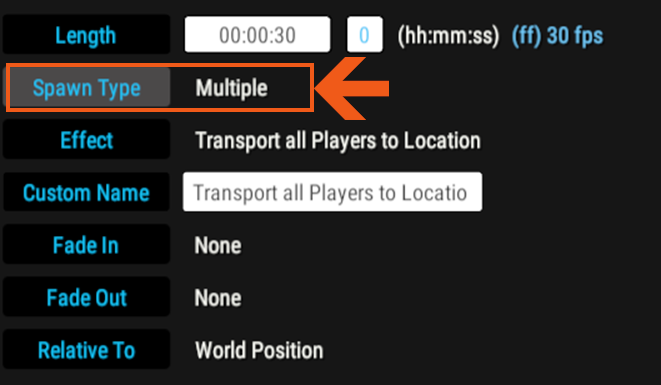 6. **Optional**: By default, the portal will work only once. To set the portal to transport the user each time that they enter the body trigger, edit the triggered **Transport all Players to Location** IFX, and then change the **Spawn Type** setting to **Multiple**.