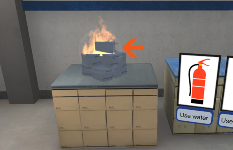 To reinforce the fact that CO2 is not a good choice for a paper fire, we’ll add an explosion if the user chooses that option.