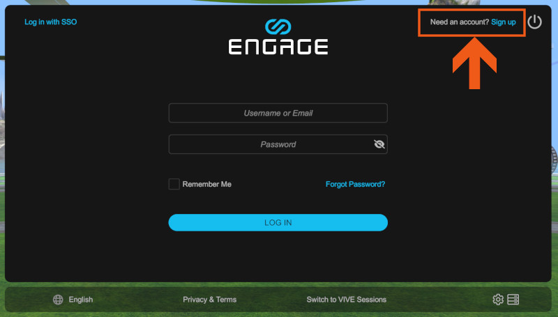 Sign up link on the main menu of the ENGAGE app