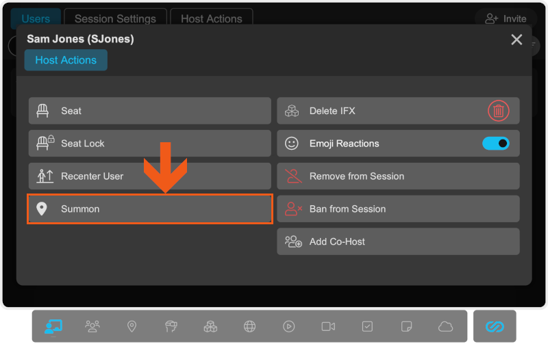 On the Host Actions page, select Summon.