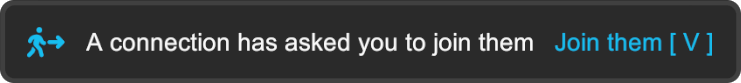 <figure><img src="https://3460182399-files.gitbook.io/~/files/v0/b/gitbook-x-prod.appspot.com/o/spaces%2FwVx6bvwqEE7tD0TYOcfj%2Fuploads%2Fgit-blob-760a1363b0bd73e445fedc7099be99f71d252af4%2Fconn_request_to_join_them.png?alt=media" alt=""><figcaption><p>Invitation to join a connection</p></figcaption></figure>