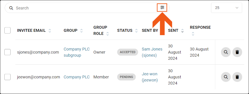 <figure><img src="https://136486474-files.gitbook.io/~/files/v0/b/gitbook-x-prod.appspot.com/o/spaces%2F0HDETjRCd2UdV2BaIb1H%2Fuploads%2Fgit-blob-9794e0d9155c9be282a43cdcc9e3c546e54db3a7%2Fsearch_bar.png?alt=media" alt=""><figcaption><p>Example search bar on the Invitations page</p></figcaption></figure>